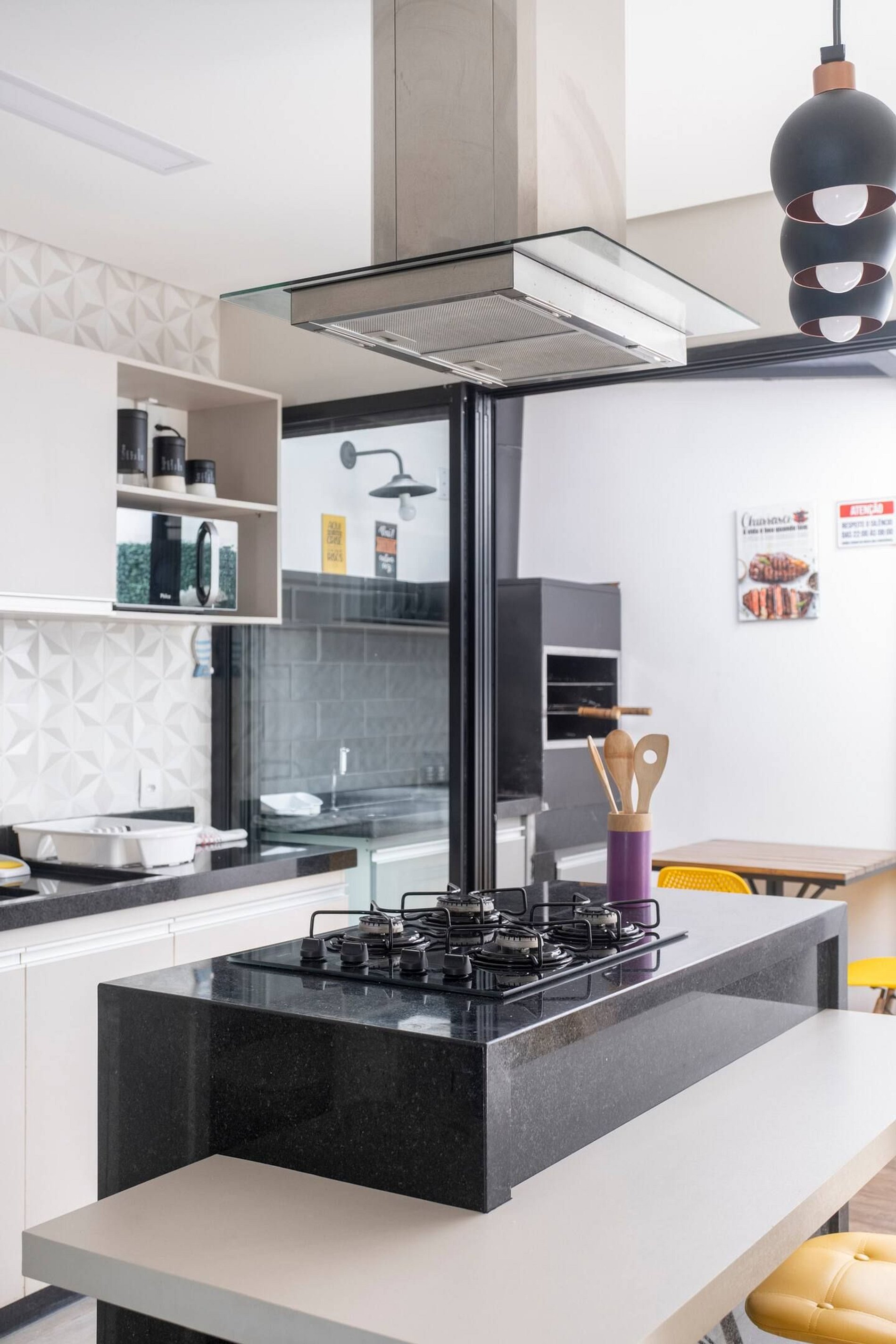 * Área interna com churrasqueira e mesa de refeições, ideal para reunir a família ou amigos