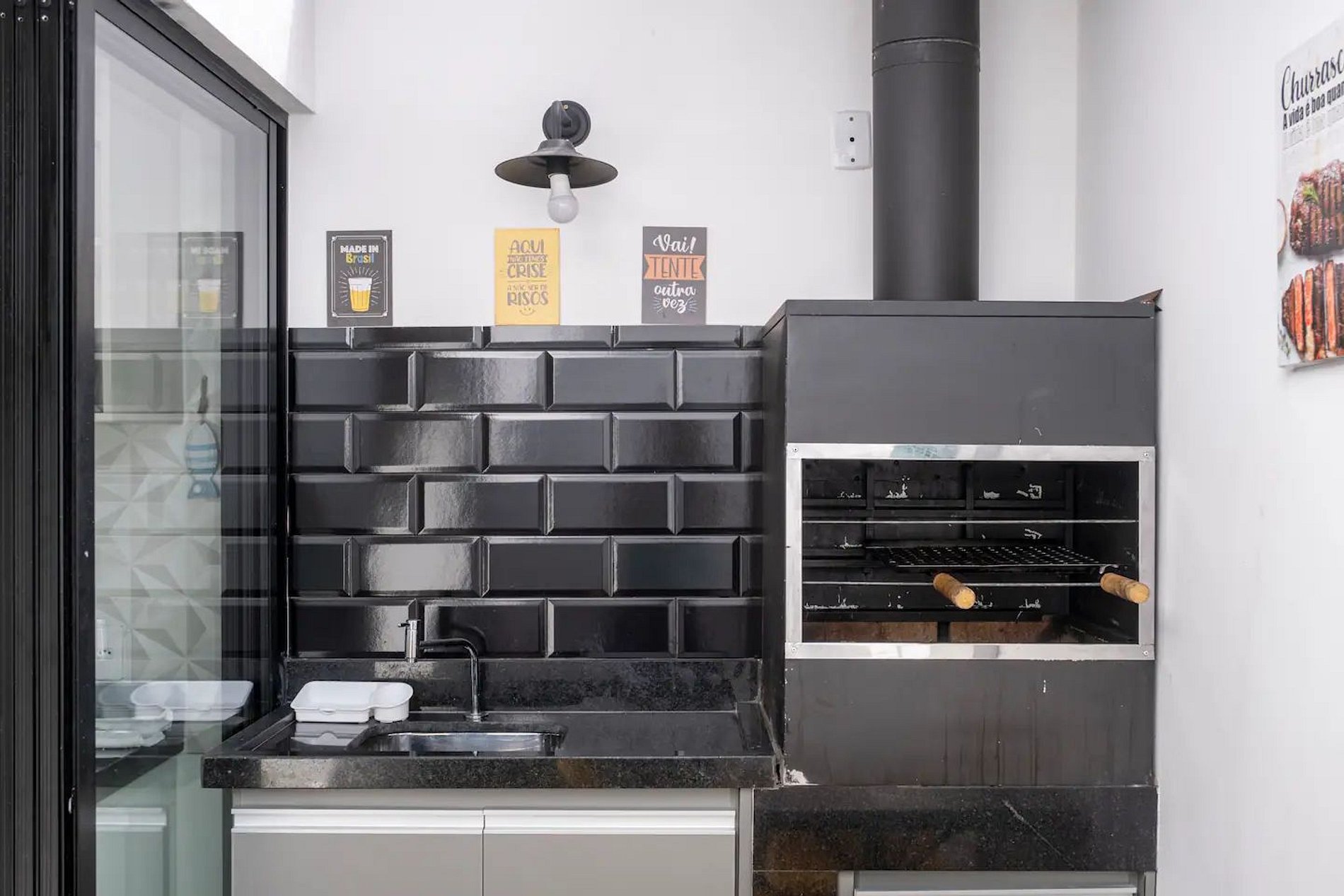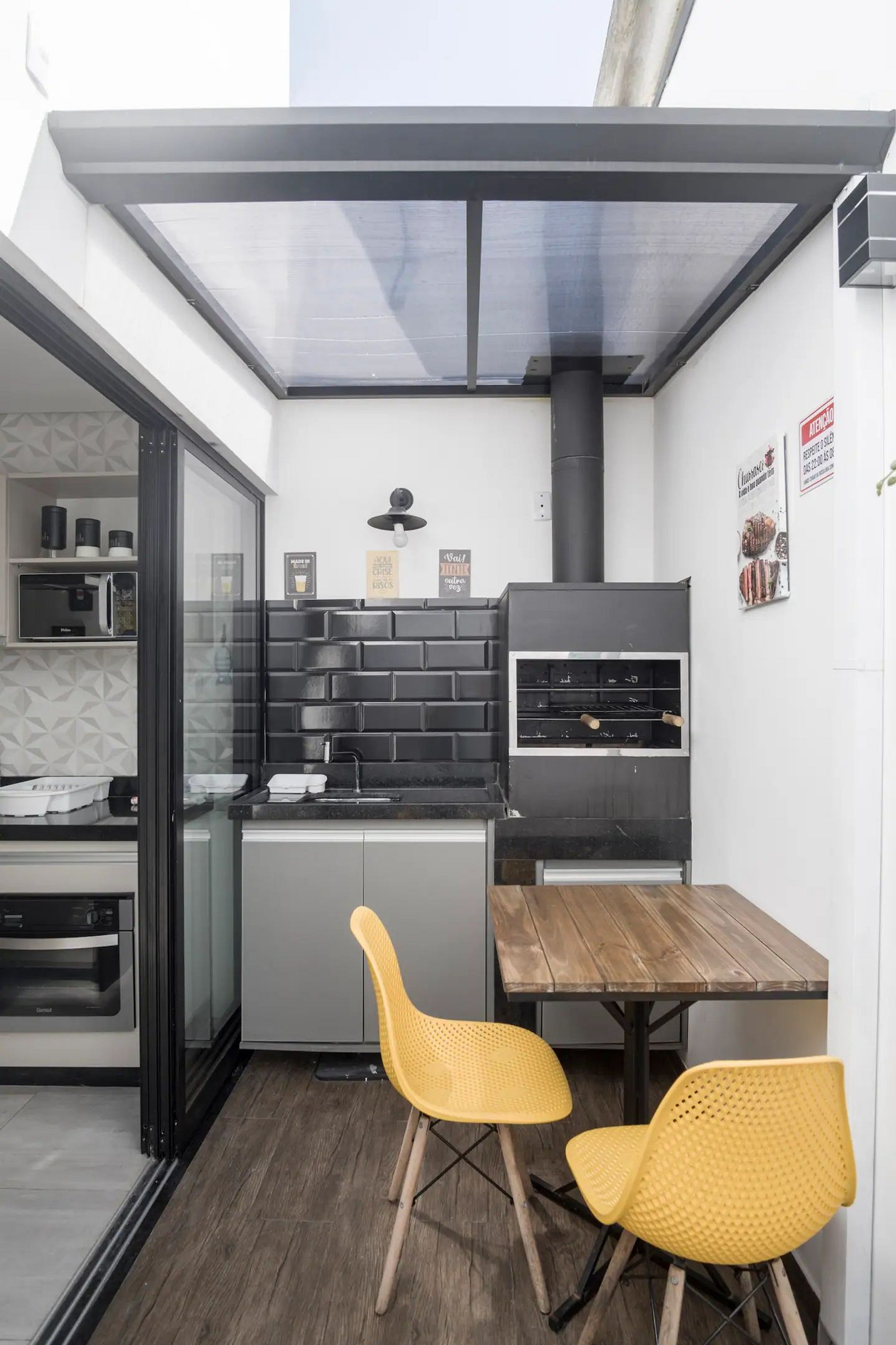 * Área interna com churrasqueira e mesa de refeições, ideal para reunir a família ou amigos