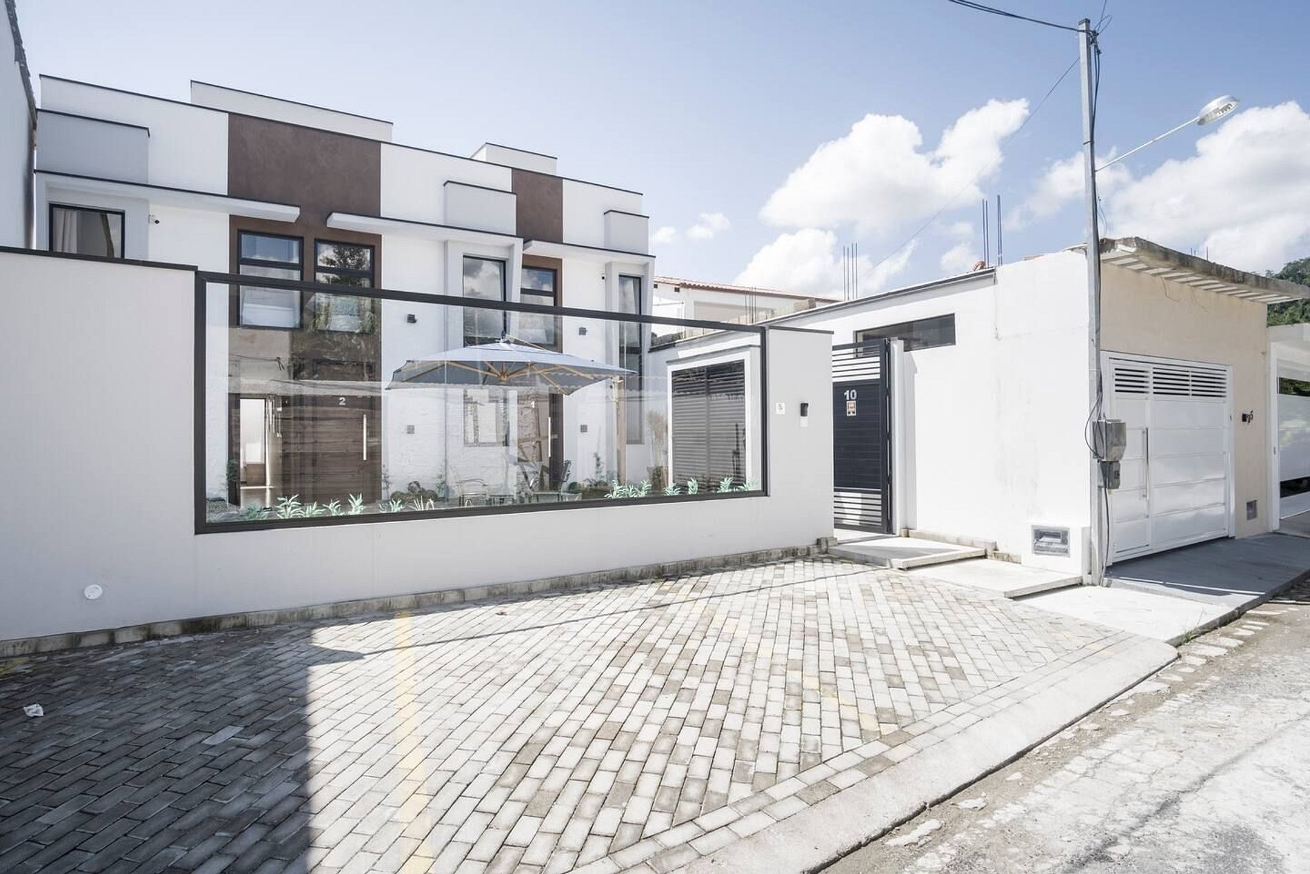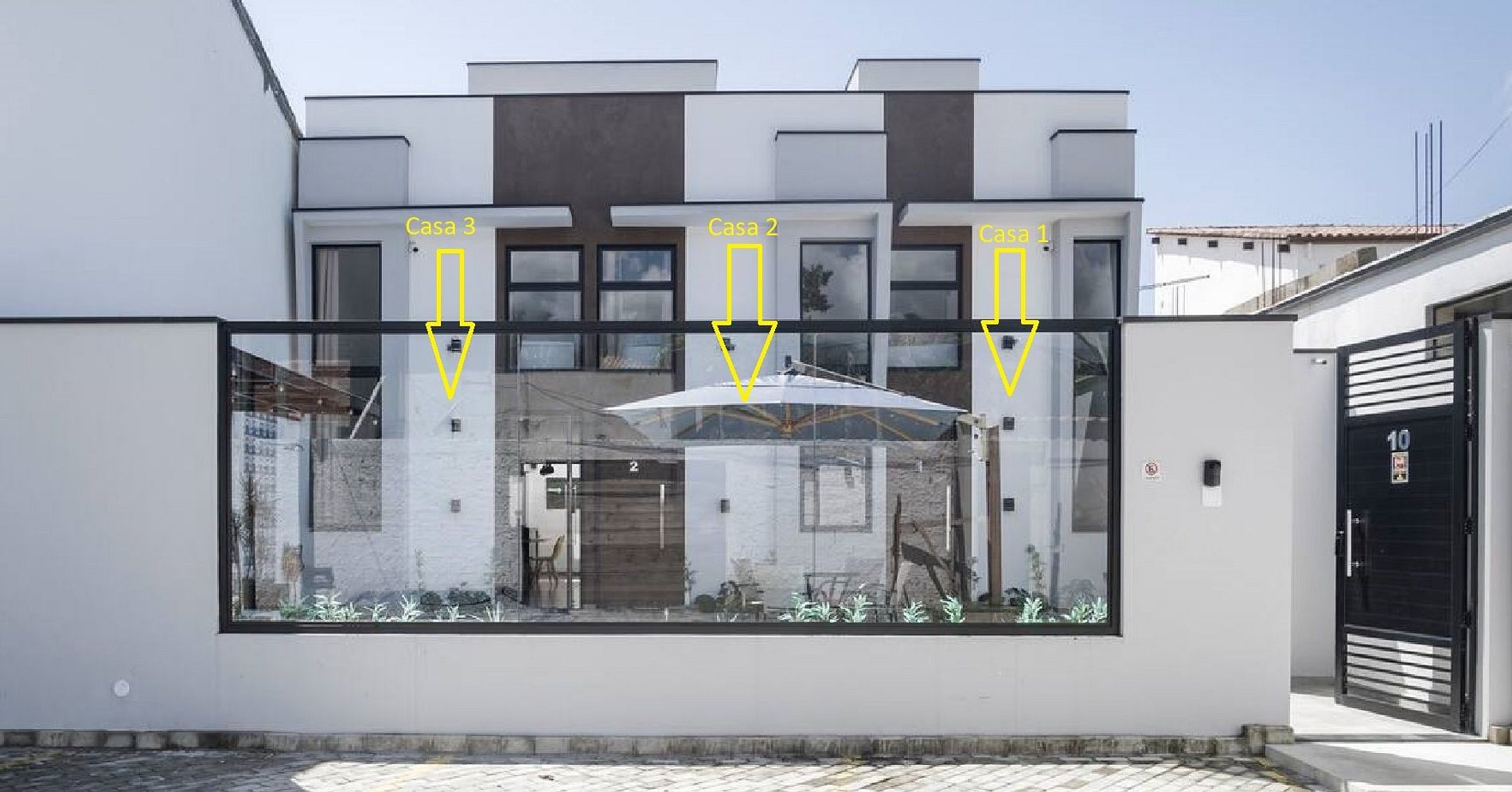 Cada casa tem 1 vaga de garagem na frente para carros médios. Carros grandes devem parar na rua (parar na rua não é problema).